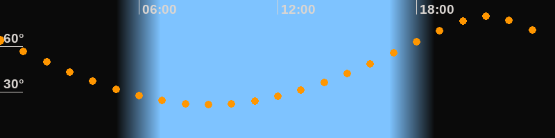 Höchster Stand (Kulmination)21:02 Uhr (h = 79,5°)