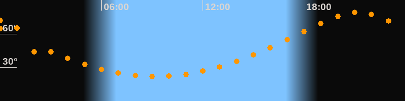 Höchster Stand (Kulmination)21:11 Uhr (h = 79,5°)