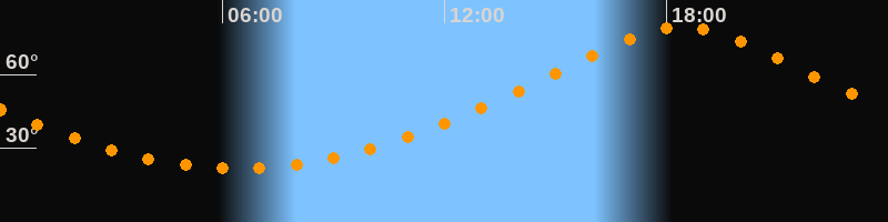 Höchster Stand (Kulmination)18:25 Uhr (h = 79,5°)