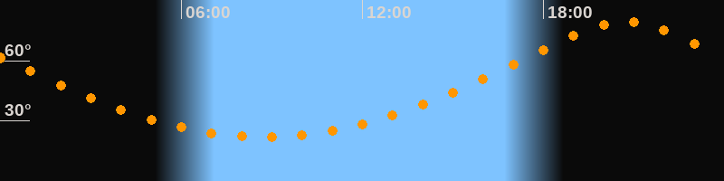 Höchster Stand (Kulmination)20:44 Uhr (h = 79,5°)