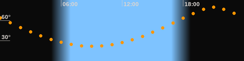 Höchster Stand (Kulmination)21:00 Uhr (h = 79,5°)