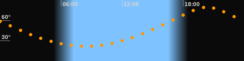 Höchster Stand (Kulmination)20:21 Uhr (h = 79,5°)