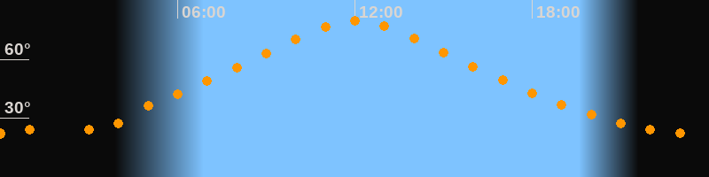 Höchster Stand (Kulmination)12:01 Uhr (h = 79,5°)