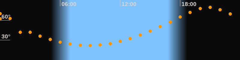 Höchster Stand (Kulmination)20:49 Uhr (h = 79,5°)
