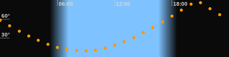 | Höchster Stand (Kulmination) | 20:37 Uhr (h = 88,4°) |