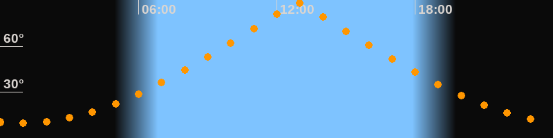 | Höchster Stand (Kulmination) | 12:55 Uhr (h = 88,4°) |