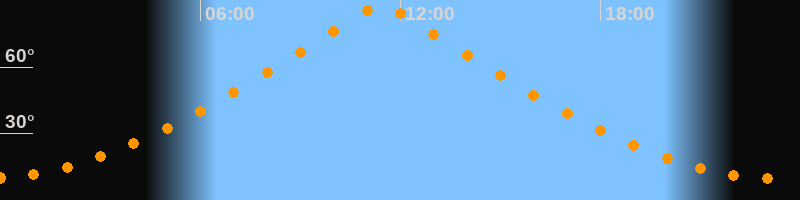 | Höchster Stand (Kulmination) | 11:25 Uhr (h = 88,4°) |