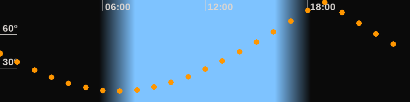 | Höchster Stand (Kulmination) | 18:53 Uhr (h = 88,4°) |