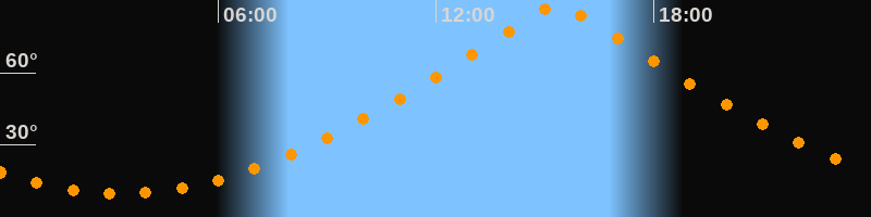 | Höchster Stand (Kulmination) | 15:21 Uhr (h = 88,4°) |