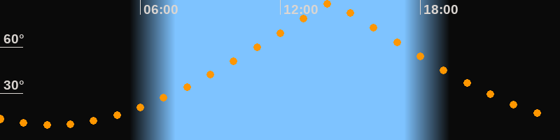 | Höchster Stand (Kulmination) | 14:10 Uhr (h = 88,4°) |