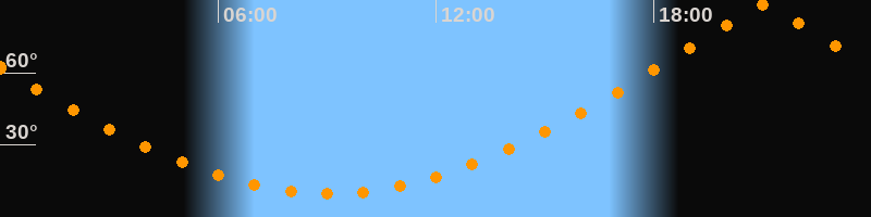 | Höchster Stand (Kulmination) | 21:02 Uhr (h = 88,4°) |