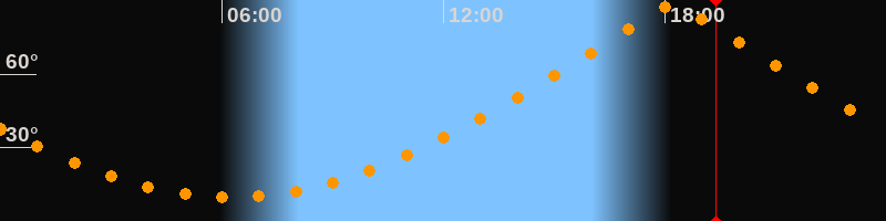 | Höchster Stand (Kulmination) | 18:13 Uhr (h = 88,4°) |