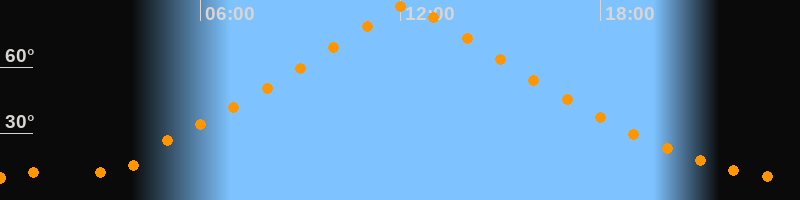 | Höchster Stand (Kulmination) | 12:12 Uhr (h = 88,4°) |