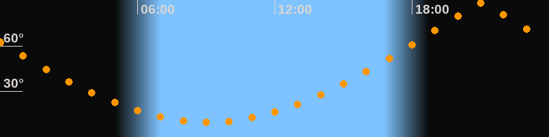 | Höchster Stand (Kulmination) | 21:03 Uhr (h = 88,4°) |