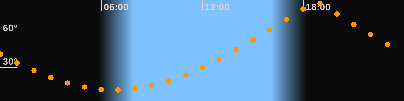 | Höchster Stand (Kulmination) | 18:45 Uhr (h = 88,4°) |