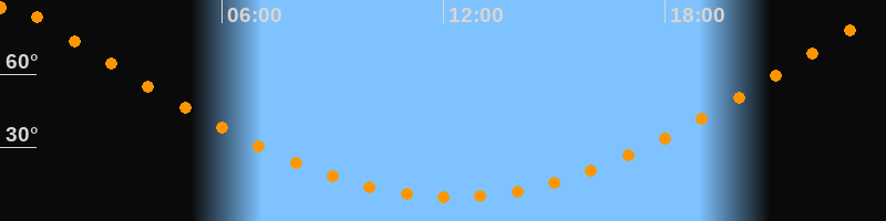| Höchster Stand (Kulmination) | 00:14 Uhr (h = 88,4°) |