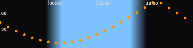 | Höchster Stand (Kulmination) | 19:26 Uhr (h = 88,4°) |