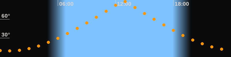 | Höchster Stand (Kulmination) | 12:48 Uhr (h = 88,4°) |