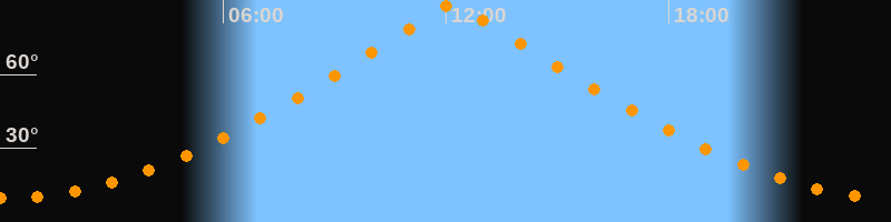 | Höchster Stand (Kulmination) | 12:11 Uhr (h = 88,4°) |