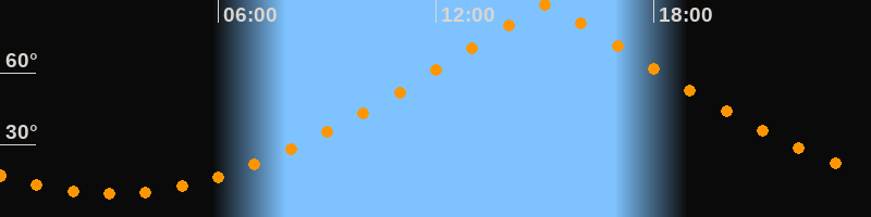| Höchster Stand (Kulmination) | 15:02 Uhr (h = 88,4°) |