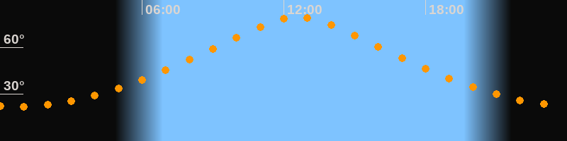 | Höchster Stand (Kulmination) | 12:35 Uhr (h = 79,3°) |