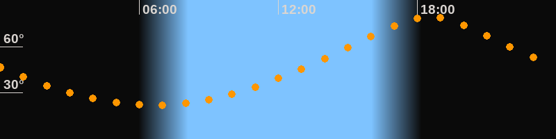 | Höchster Stand (Kulmination) | 18:32 Uhr (h = 79,3°) |