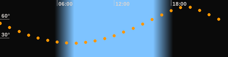 | Höchster Stand (Kulmination) | 19:32 Uhr (h = 79,3°) |