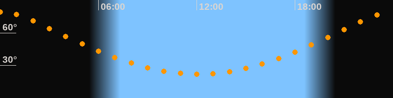 | Höchster Stand (Kulmination) | 00:02 Uhr (h = 79,3°) |