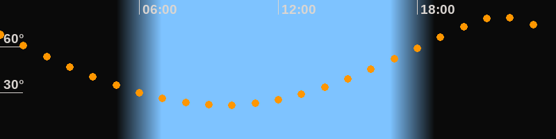 | Höchster Stand (Kulmination) | 21:35 Uhr (h = 79,3°) |