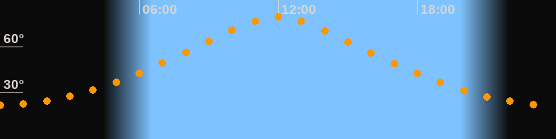 | Höchster Stand (Kulmination) | 11:58 Uhr (h = 79,3°) |