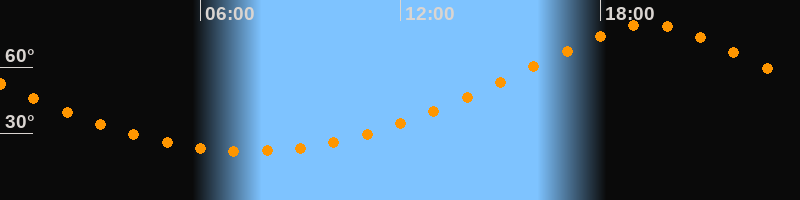 | Höchster Stand (Kulmination) | 19:26 Uhr (h = 79,3°) |