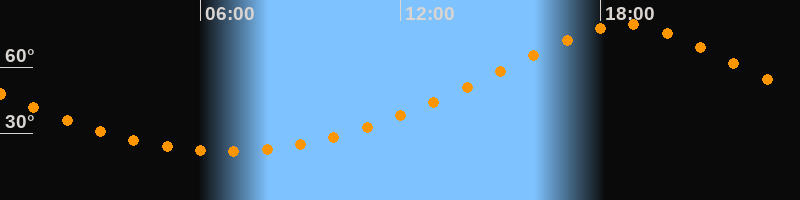 | Höchster Stand (Kulmination) | 18:45 Uhr (h = 79,3°) |