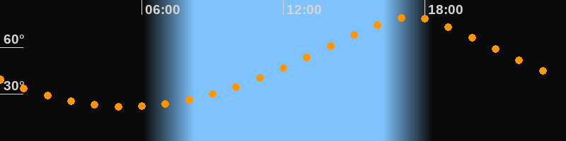 | Höchster Stand (Kulmination) | 17:22 Uhr (h = 79,3°) |