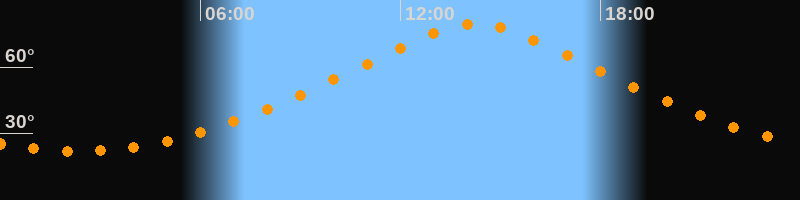 | Höchster Stand (Kulmination) | 14:15 Uhr (h = 79,3°) |