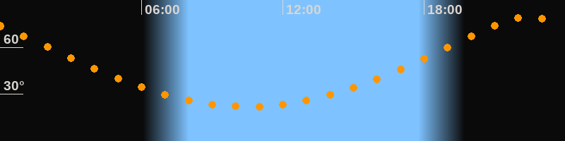 | Höchster Stand (Kulmination) | 22:29 Uhr (h = 79,3°) |