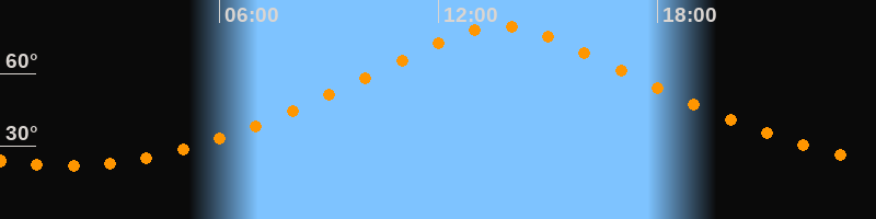 | Höchster Stand (Kulmination) | 13:43 Uhr (h = 79,3°) |