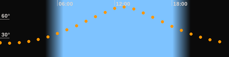 | Höchster Stand (Kulmination) | 12:56 Uhr (h = 79,3°) |