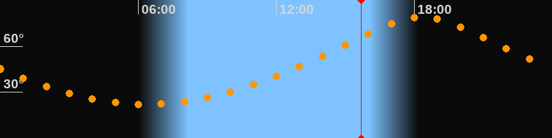 Höchster Stand (Kulmination)18:20 Uhr (h = 79,3°)