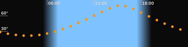 | Höchster Stand (Kulmination) | 15:24 Uhr (h = 79,6°) |