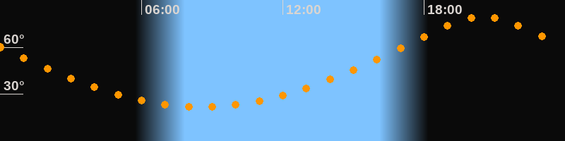| Höchster Stand (Kulmination) | 20:31 Uhr (h = 79,6°) |