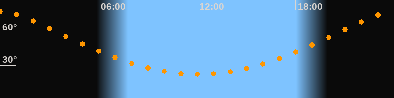 | Höchster Stand (Kulmination) | 00:01 Uhr (h = 79,6°) |