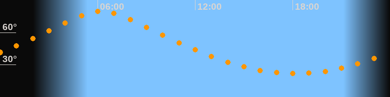 | Höchster Stand (Kulmination) | 06:12 Uhr (h = 79,6°) |