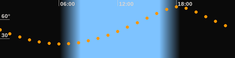| Höchster Stand (Kulmination) | 18:10 Uhr (h = 79,6°) |