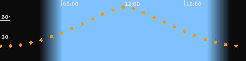| Höchster Stand (Kulmination) | 12:09 Uhr (h = 79,6°) |
