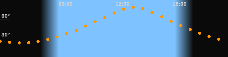 | Höchster Stand (Kulmination) | 14:04 Uhr (h = 78,9°) |