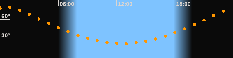 | Höchster Stand (Kulmination) | 00:35 Uhr (h = 78,9°) |