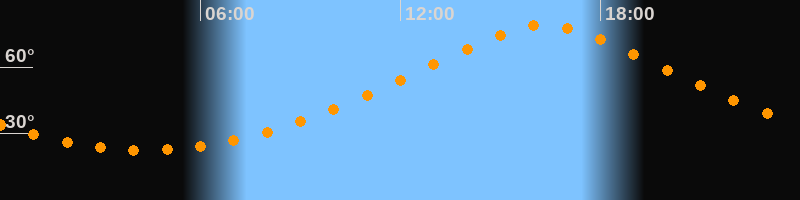 | Höchster Stand (Kulmination) | 16:19 Uhr (h = 78,9°) |