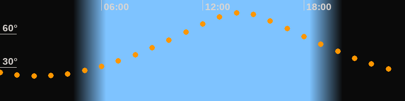 | Höchster Stand (Kulmination) | 14:13 Uhr (h = 78,9°) |