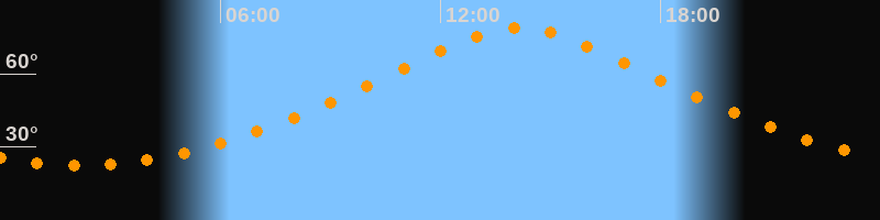 | Höchster Stand (Kulmination) | 14:09 Uhr (h = 78,9°) |