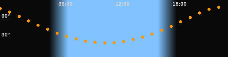 | Höchster Stand (Kulmination) | 23:05 Uhr (h = 78,9°) |